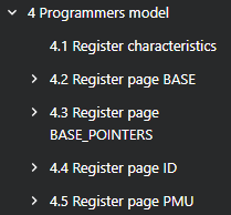 그리고 아래 목차에 나와있는 것처럼, 각 페이지 별로 레지스터들이 구분되어서 저장되어있다