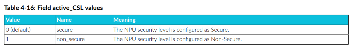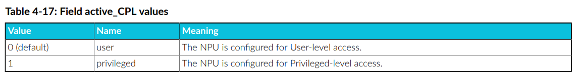 이 값들은 NPU가 AXI 마스터로 작용해서 DMA를 통해 메모리와 소통할 때에도 사용되게 된다 (AxPROT 시그널로 이 active_CSL, active_CPL값을 기반해서 보냄)