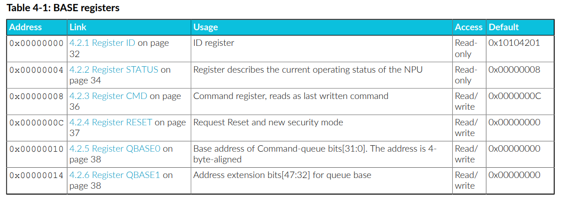 ethos NPU 레지스터는 MMIO 영역으로 접근할 수 있다