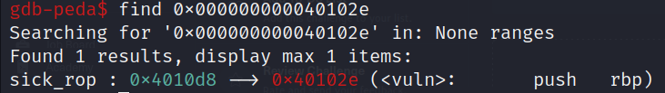 gdb에서 vuln의 주소를 담고 있는 곳을 찾으니 0x4010d8이란다. 그래서 rsp에 해당 값을 넣어준 것이다.