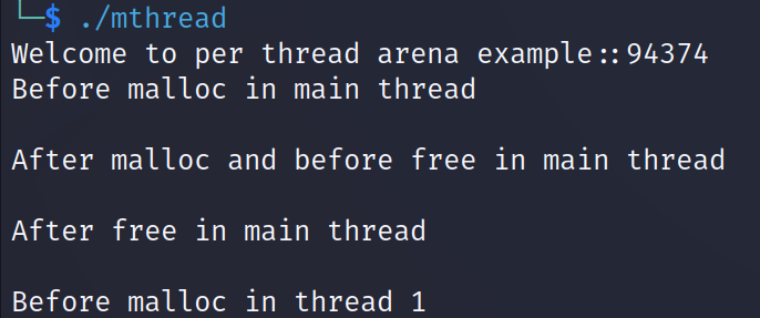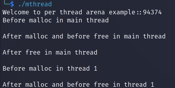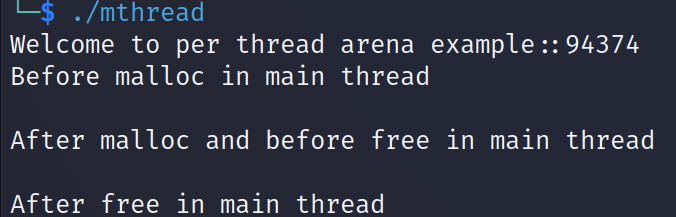 printf("Welcome to per thread arena example::%d\n",getpid());