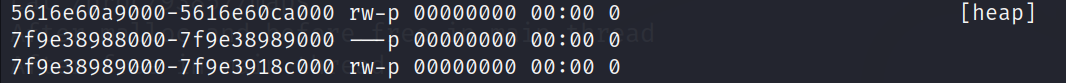 7f9e3400000~7f9e3800000 의 부분이 추가적으로 생성되었다. 이 부분은 mmap으로 생성된 thread1의 새로운 힙 부분이다.