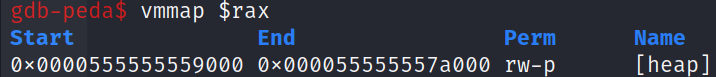 위를 보면 rax값이 heap에 할당된 것을 볼 수 있다.