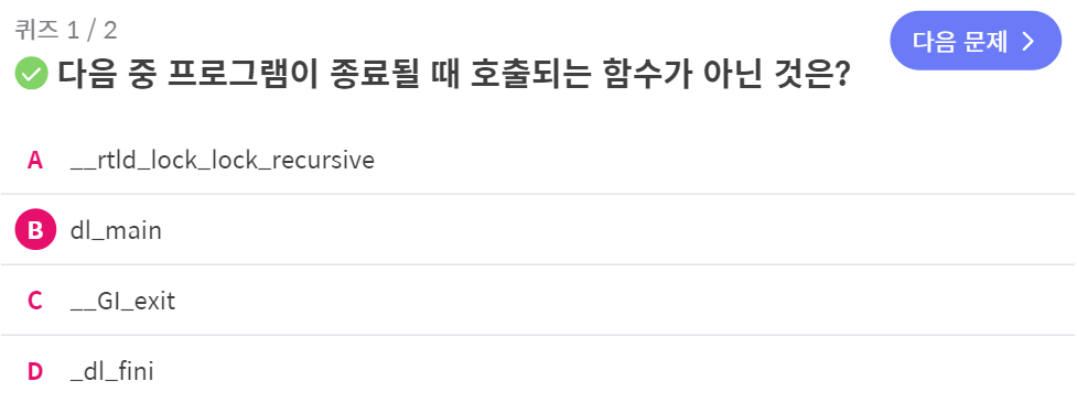 기본적으로 이때 dl_fini 함수를 호출하게 됨