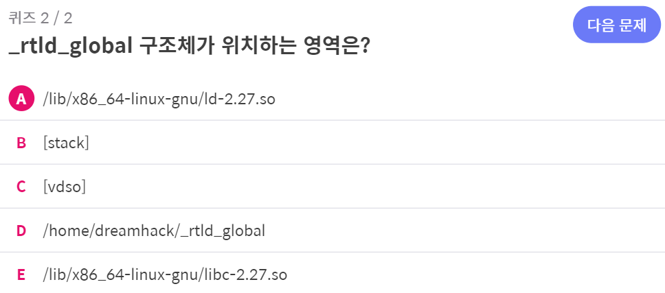 우리가 설정한 /home/dreamhack/ld-2.27.so가 잘 매핑되어있는 것을 위 코드 하단에서 확인할 수 있다!